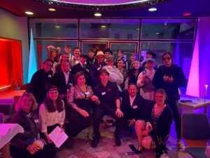 Am Samstag 19.11.22 verwandelte sich das Foyer des Kinos in die „Flüsterkneipe“. Unsere Jugendspieler veranstalteten dort ein Krimidinner. Pünktlich um 19 Uhr trafen alle Spieler in aufwändigen Kostümen und perfekter Maske ein und waren heiß darauf, den Mörder zu finden. Das Buffet füllte sich dank der mitgebrachten Speisen und nach einer kurzen Erklärung der Spielregeln nahm das Dinner seinen Lauf. Das Stück spielte in Chicago in den 20er Jahren und wurde mit rund 20 Spielern besetzt. Nach 3 h Stunden voller Spaß, Aufregung, Mord und Totschlag wurden verschiedenste Personen verdächtigt – doch der Mörder hielt sich bedeckt. Nach der Auflösung kam es zum großen Gelächter und alles ergab auf einmal einen Sinn. In gemütlicher Runde ließen sie den Abend ausklingen und sind schon in die Spielerabfrage fürs nächste Jugendtheater 2023 gestartet.